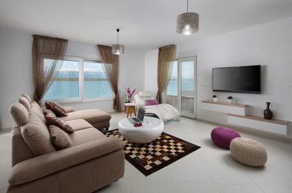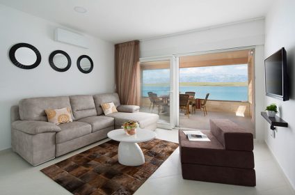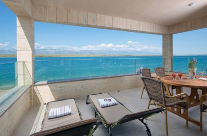 Malibu Royal is a luxury 4-star villa located just a few meters from the sea. The moment you step into one of the 5 luxuriously decorated apartments, you are dazzled by the panoramic view of the sea and the mountain of Velebit, huge sliding rocks and large windows create a feeling as if on the open sea. Top design, carefully selected details, and spaciousness of the key elements of each apartment. At your disposal are two-bedroom apartments on the ground floor, four one-bedroom apartments on the first and second floor of the villa. Best of all, just one step and you’re in the sea!