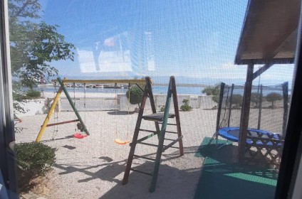 Plaža je šljunčana sa pješčanim dnom, udaljena svega 20 metara od apartmana.